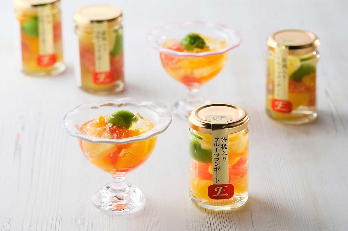 翡翠色の若桃(種ができる前の桃)をはじめ、みかん・甘夏・グレープフルーツ・パイナップルを、ふるふる食感のジュレで包みました。華やかな見た目は贈りものにぴったり。食べきりサイズも嬉しいお品。冷やしてそのままはもちろん、炭酸と合わせてフルーツポンチに、ほんのり凍らせてシャーベット風にしてもお楽しみいただけます。