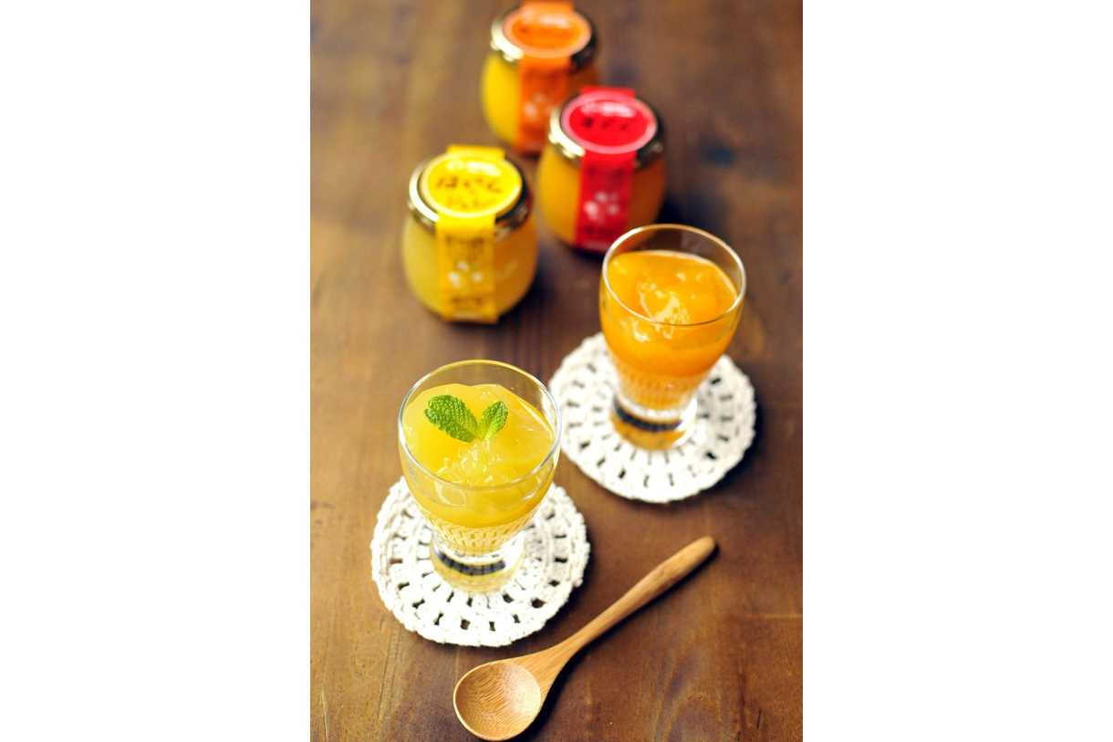 果肉だけがジュースになった100%ストレートジュースを原料としているため、とってもクリアな味。ぷるんぷるんの食感がたまらなく、柑橘そのものの特長をそのまんまゼリーにしました。