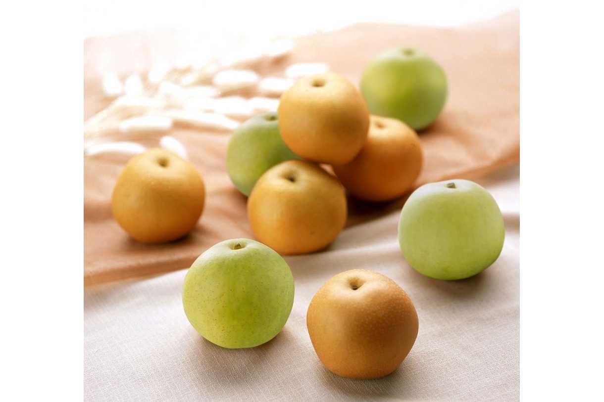 ジューシーで、酸味と甘みのバランスのとれた爽やかな味とシャキシャキとした食感が魅力の青梨代表「二十世紀梨」。その名の通り果汁をたっぷりと含んだみずみずしい食感としっかりとした甘みが人気の赤梨「豊水」。2色の梨をお楽しみください。