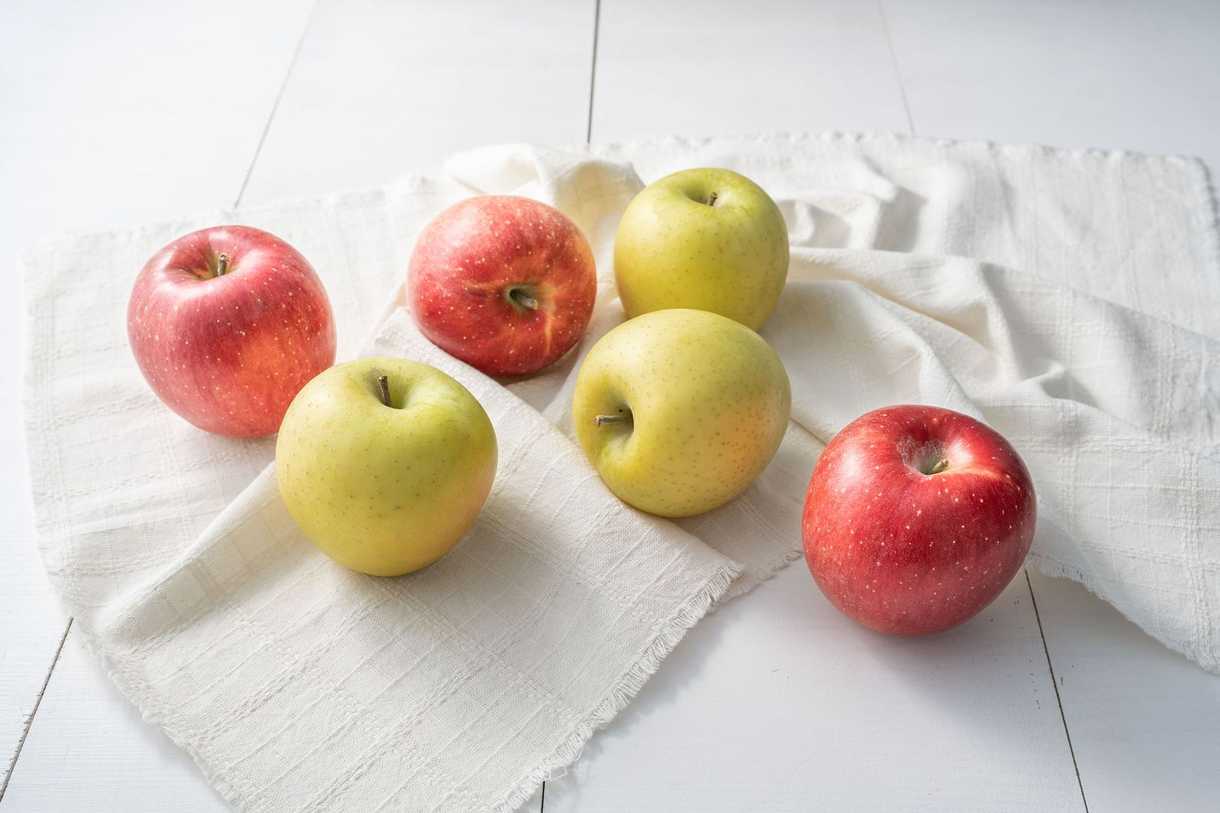 ふじとつがるから生まれた赤い「シナノスイート」は、酸味が少なくジューシーでシャキシャキ食感が楽しめます。ゴールデンデリシャスと千秋を親に持つ黄色い「シナノゴールド」は甘みと酸味のバランスが良く、貯蔵性に優れています。どちらも甘いですが、酸味もある「シナノゴールド」と、あまり酸味のない「シナノスイート」、2つの個性をお楽しみください。