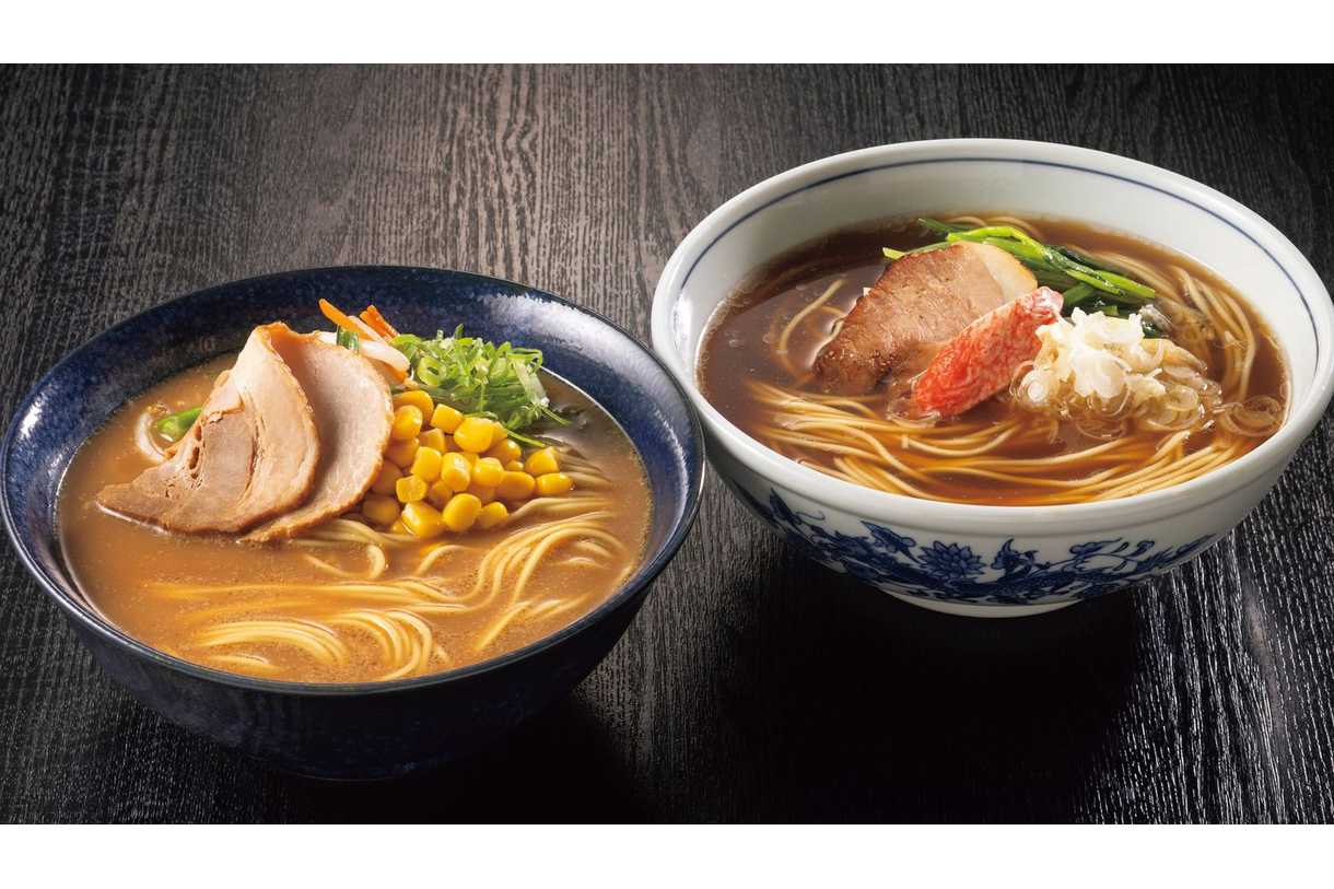 「旨麺」にさっぽろ醤油スープとさっぽろ味噌スープをセットしました。