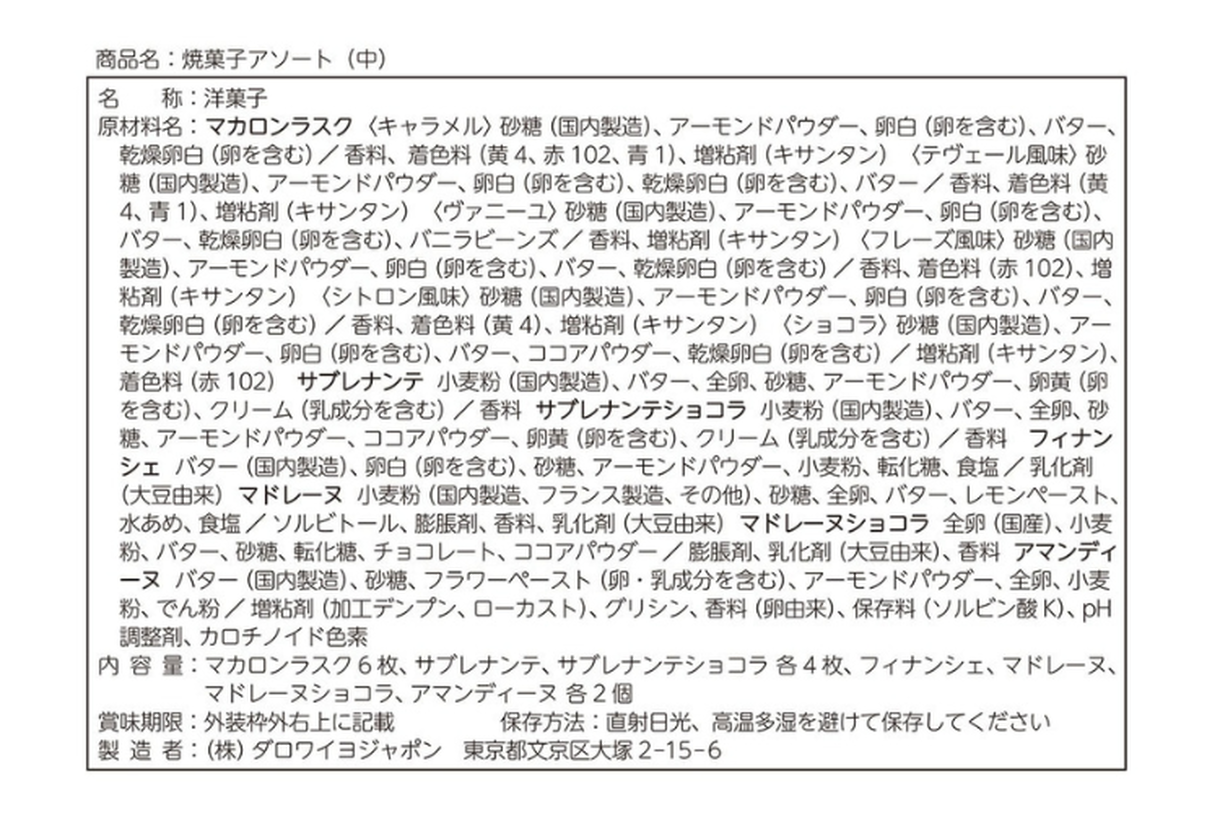 アレルギー表示::小麦、乳、卵、大豆、アーモンド