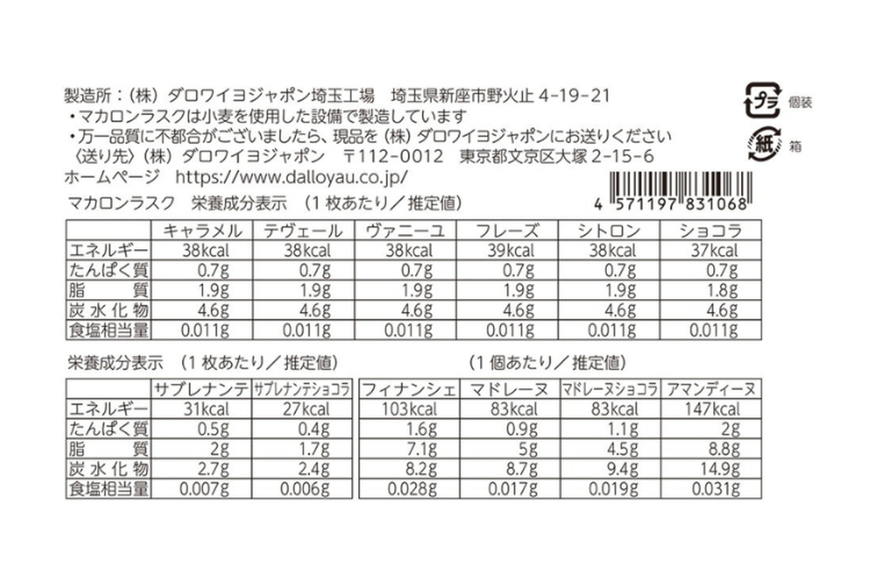 マカロンラスクをはじめとした人気の焼き菓子が一度に愉しめるアソートです。
