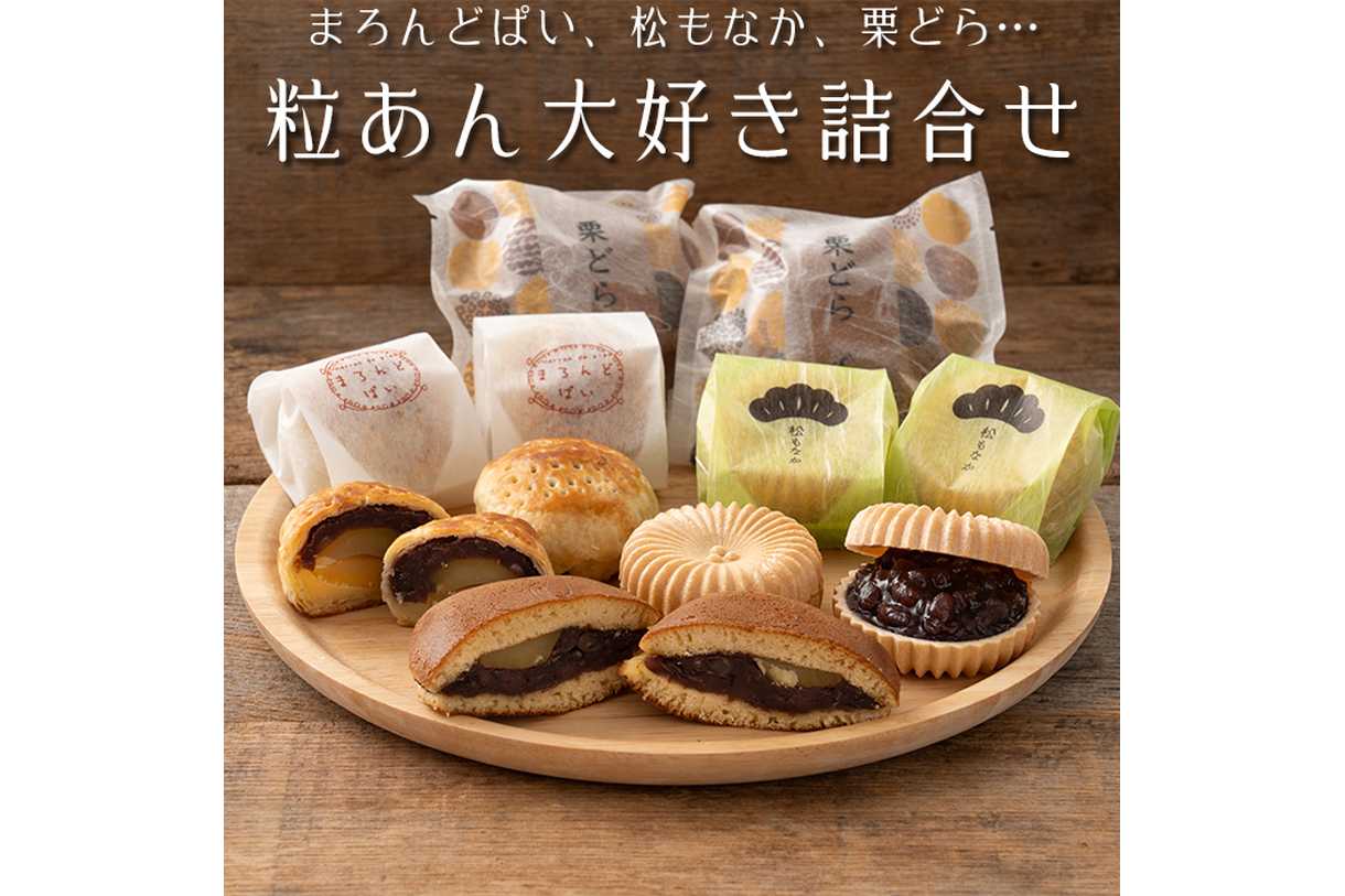 松もなか、まろんどぱい、栗どらの粒あんで作った和菓子詰め合わせです。