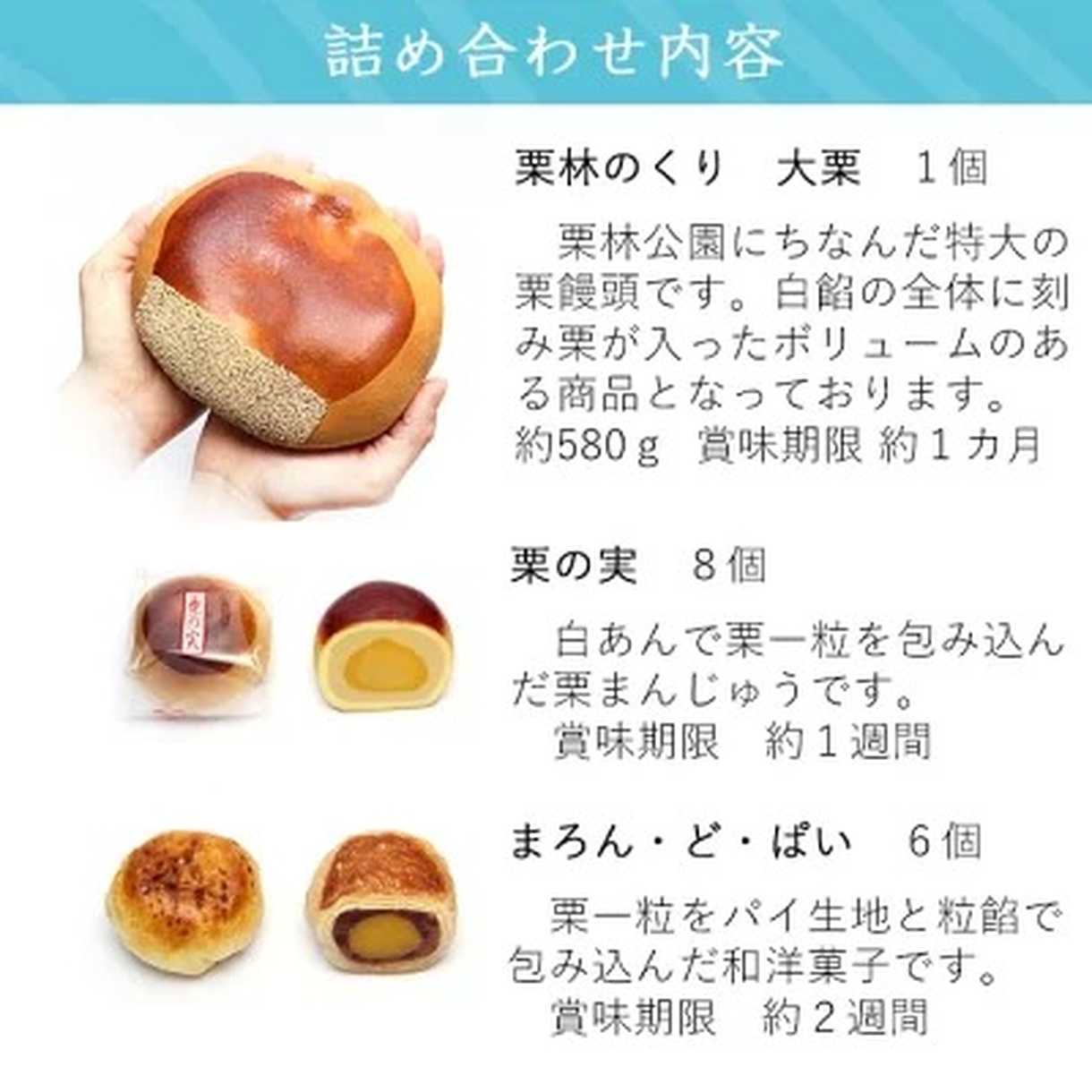 「栗林のくり 大栗」と「栗の実」、「まろんどぱい」の詰め合わせです。
