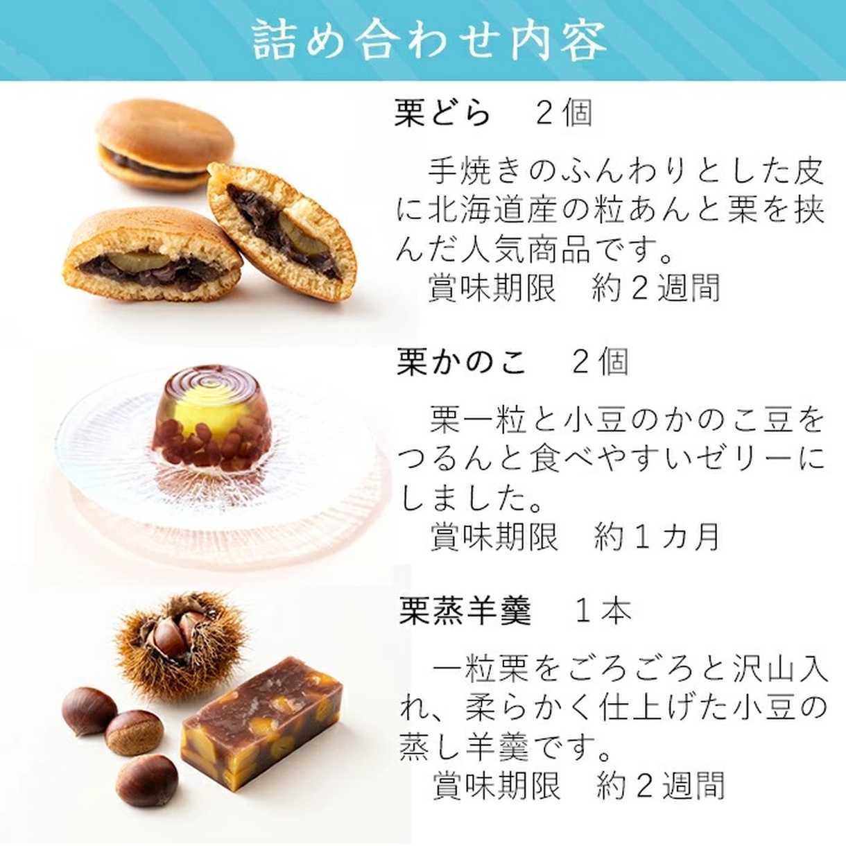 栗が入った銘菓を、色々な種類で楽しめる詰め合わせです。