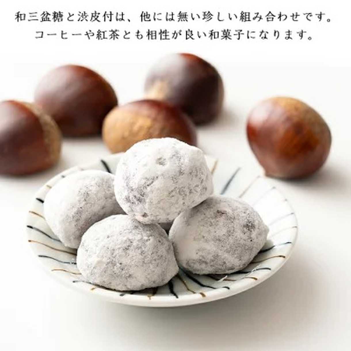 和三盆渋皮栗納豆:香川県産和三盆糖をまぶした渋皮付き栗の甘納豆