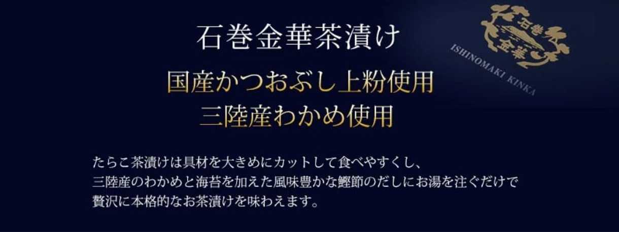 国産かつおぶし上粉使用 三陸産わかめ使用 石巻金華茶漬けです