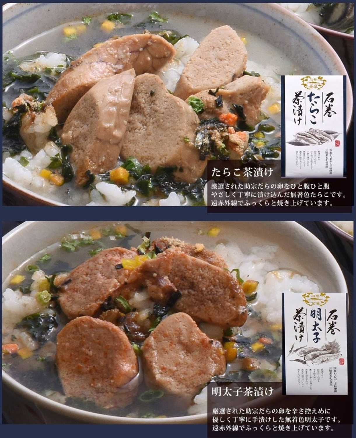 たらこ茶漬けは具材を大きめにカットして食べやすくして、三陸産のわかめと海苔を加えた風味豊かなかつおぶしのだしにお湯を注ぐだけで贅沢に本格的なお茶漬けを味わえます。