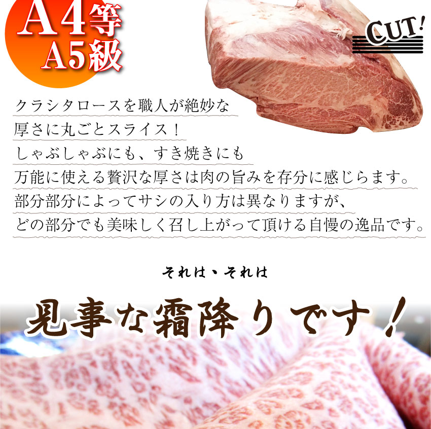 すき焼き、しゃぶしゃぶにピッタリな見事な霜降り黒毛和牛です。