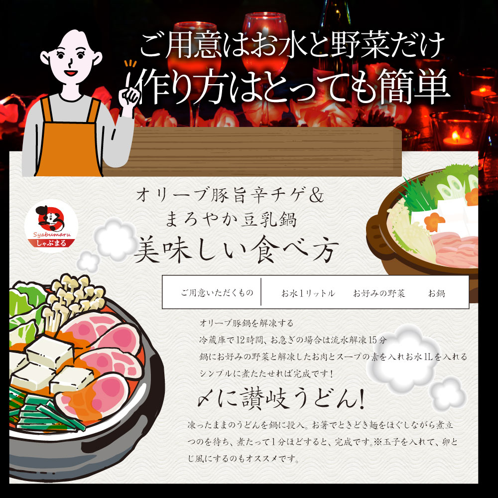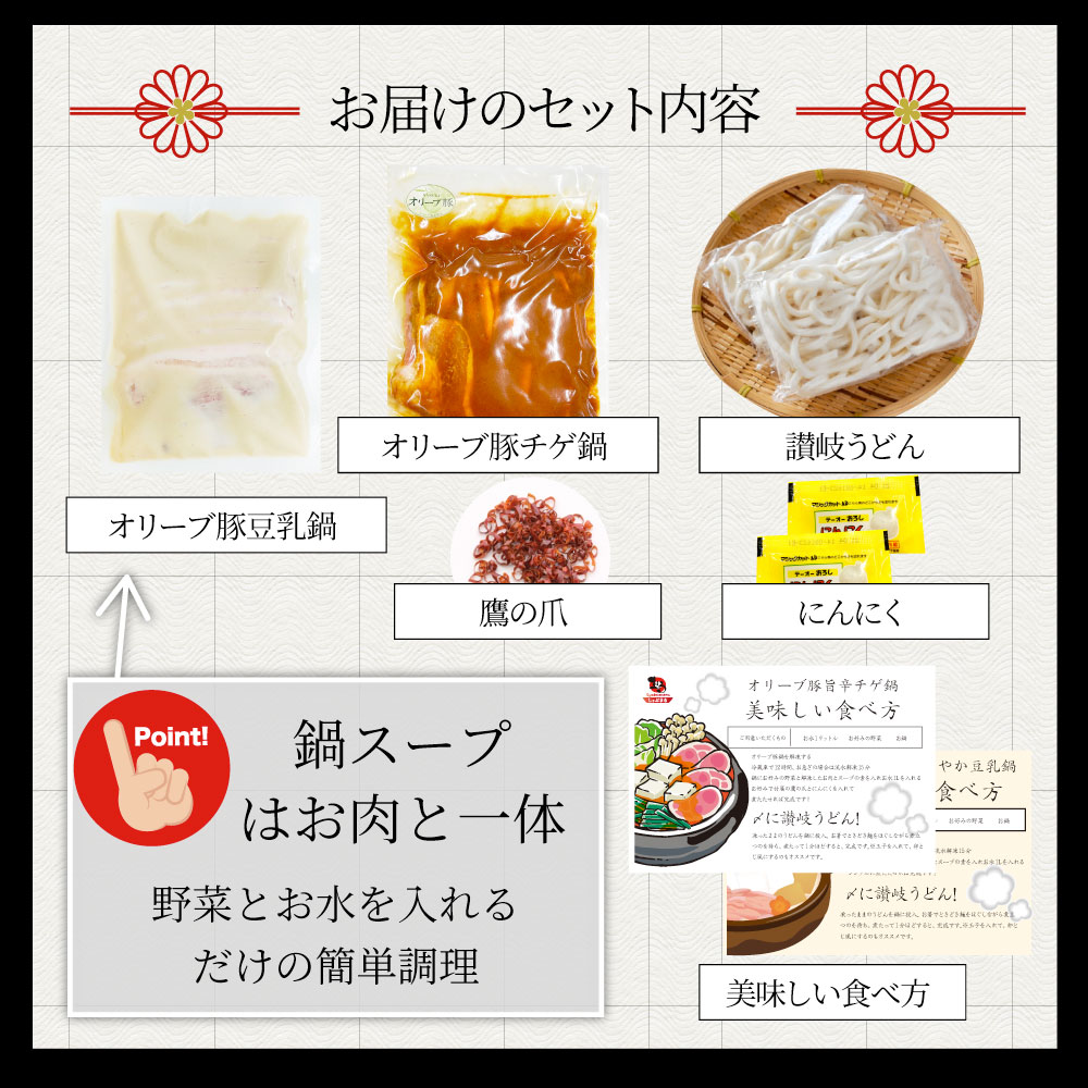 オリーブ豚を特製ダレに漬け込んだ簡単調理の贅沢食べ比べ紅白セット。