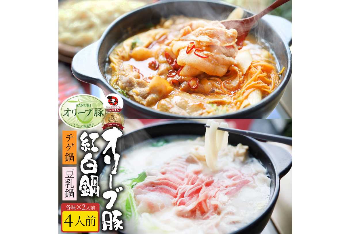 オリーブ豚を特製ダレに漬け込んだ簡単調理の贅沢食べ比べ紅白セット。