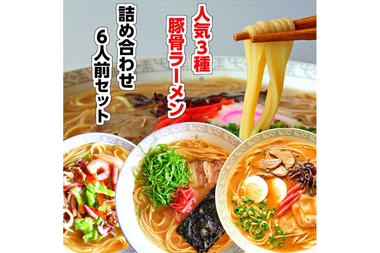 大人気セット本場九州豚骨煮込みラーメン3種6人前をお手軽サイズでお届け!