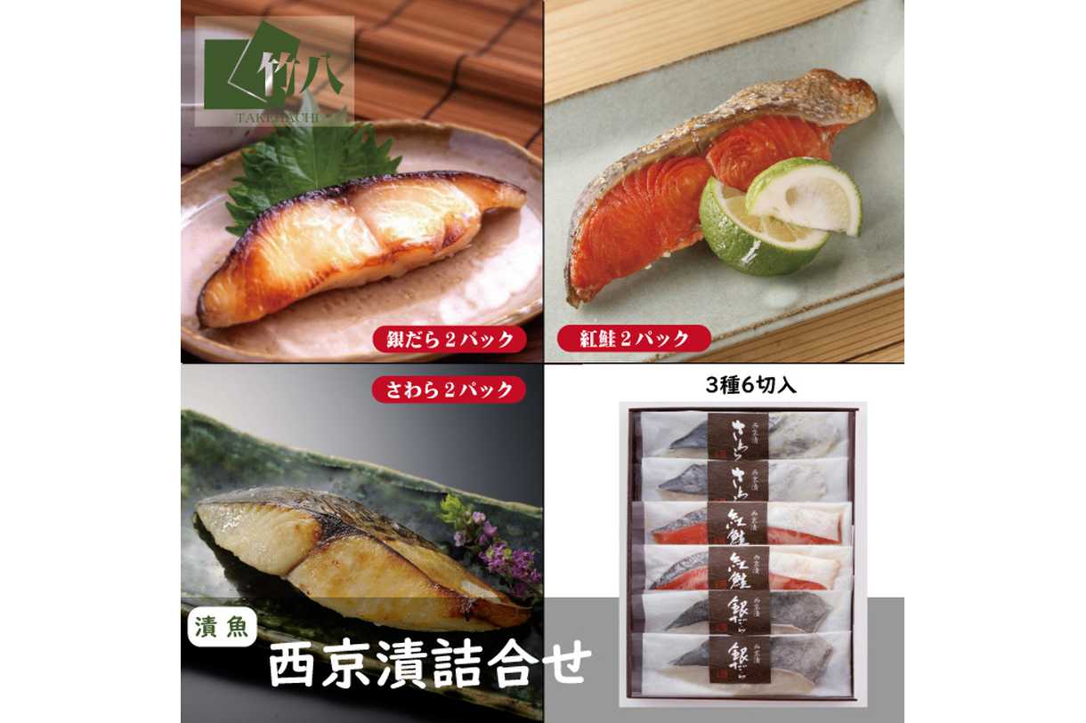竹八 西京漬詰合せ 銀だら・紅鮭・さわら×各2:6切 化粧箱入り