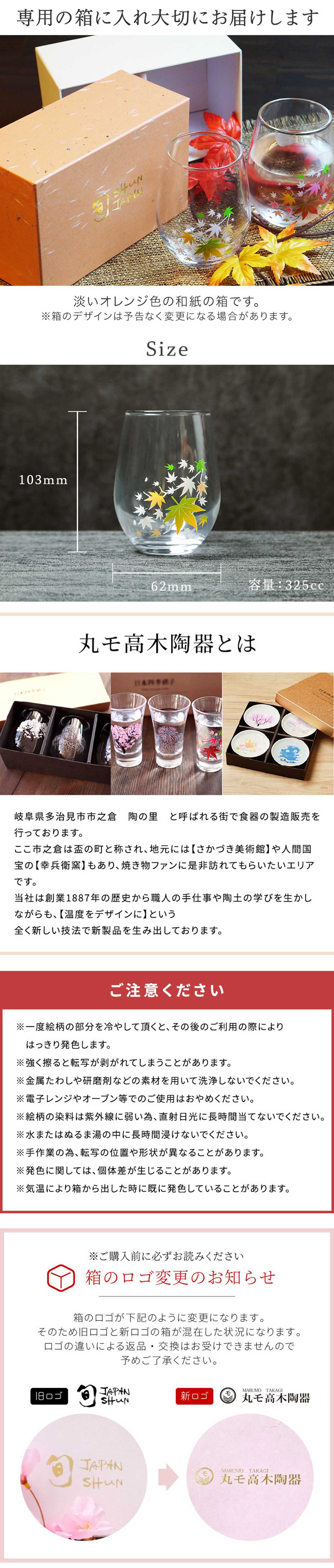 ・化粧箱が「旬JAPAN」刻印から、「丸モ高木陶器」の刻印のものに予告なく切り替わる事がございます。