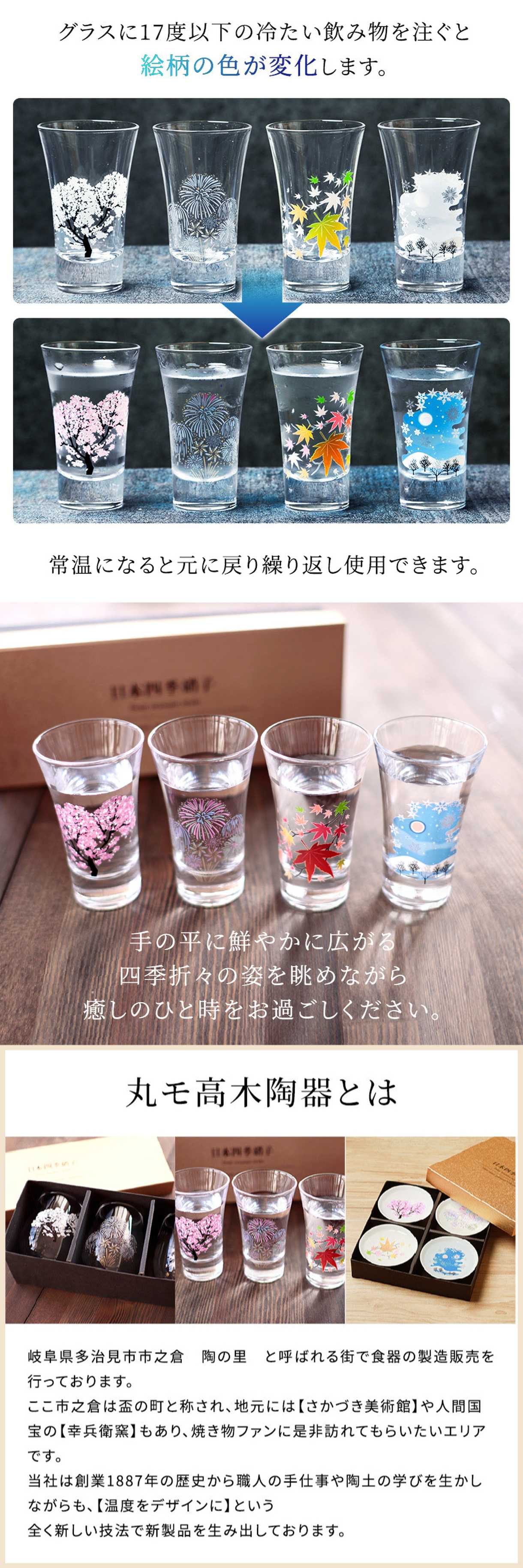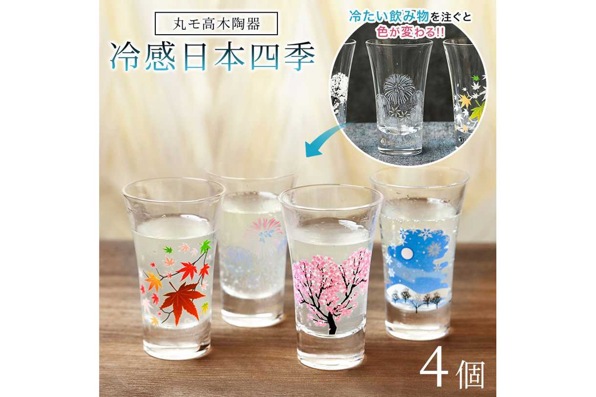 丸モ高木陶器 冷感 日本四季 天開グラス 4個セット