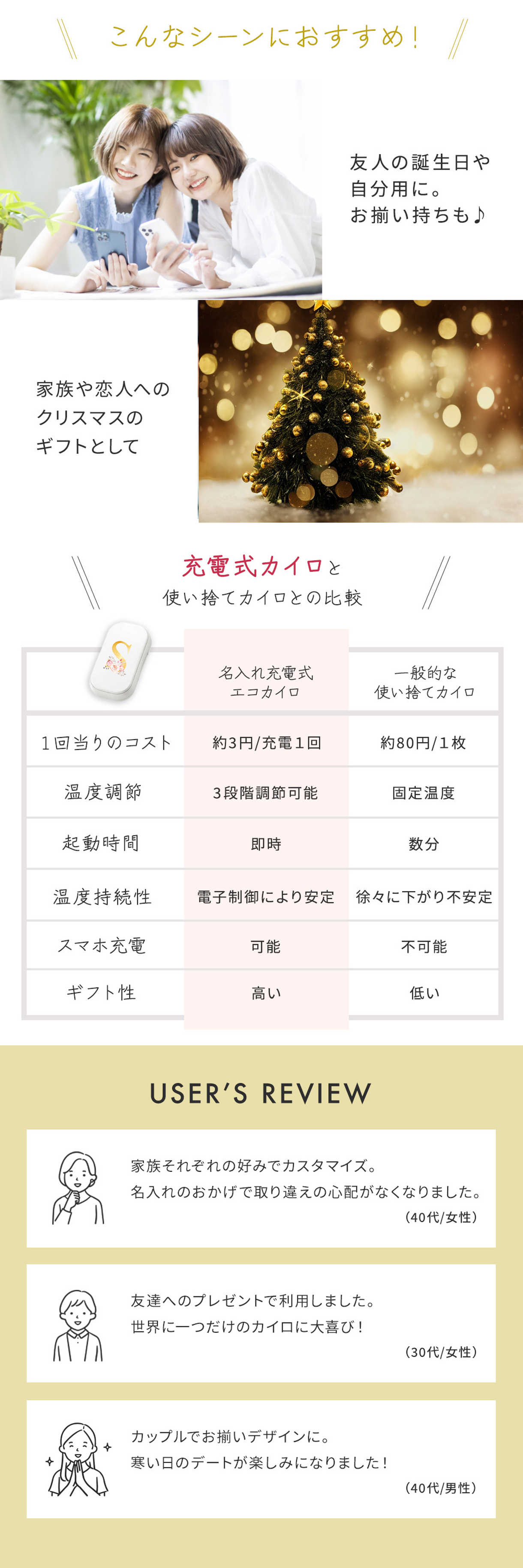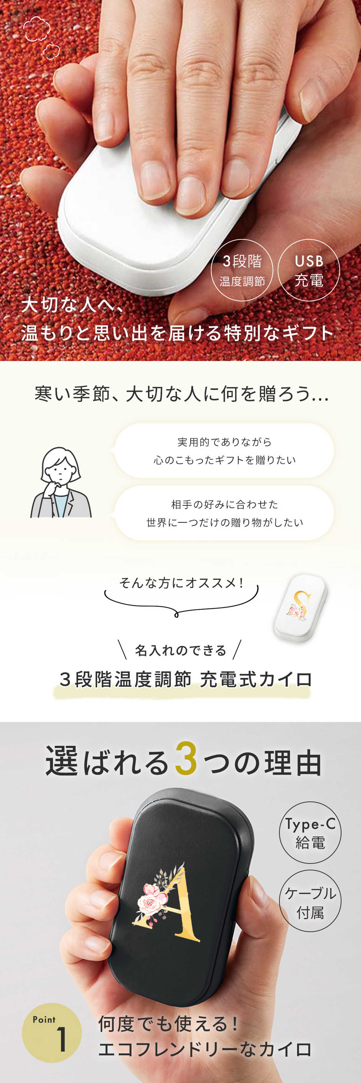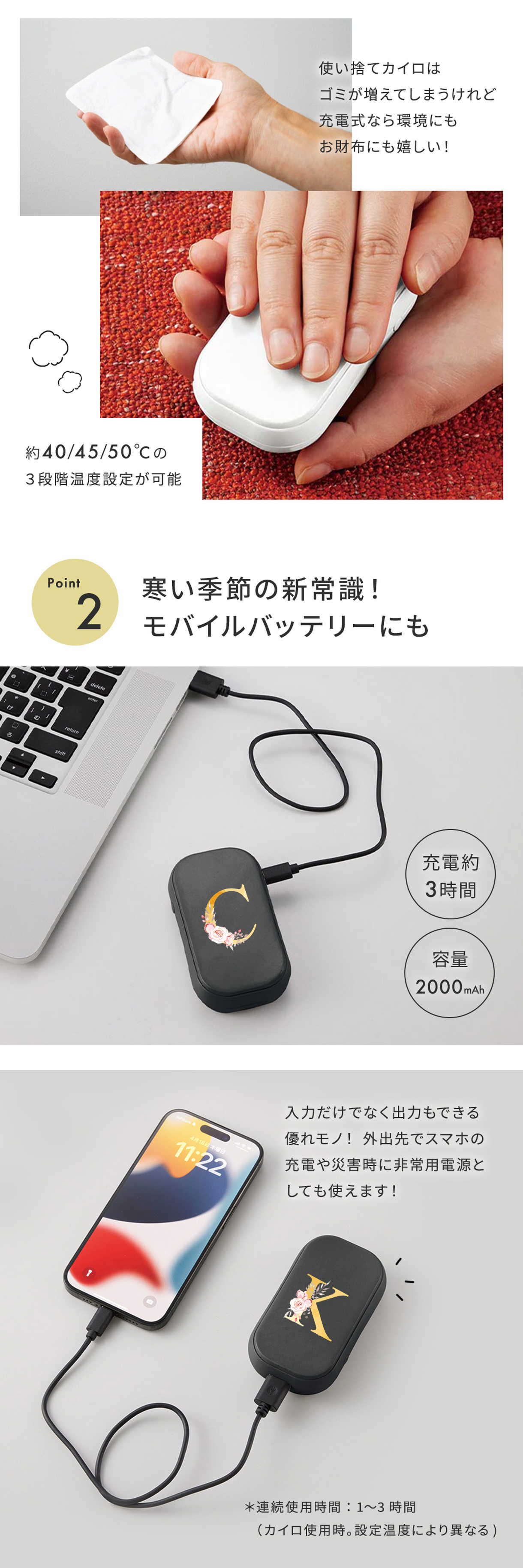 【全面デザイン】名入れ 3段階温度調節 充電式カイロ