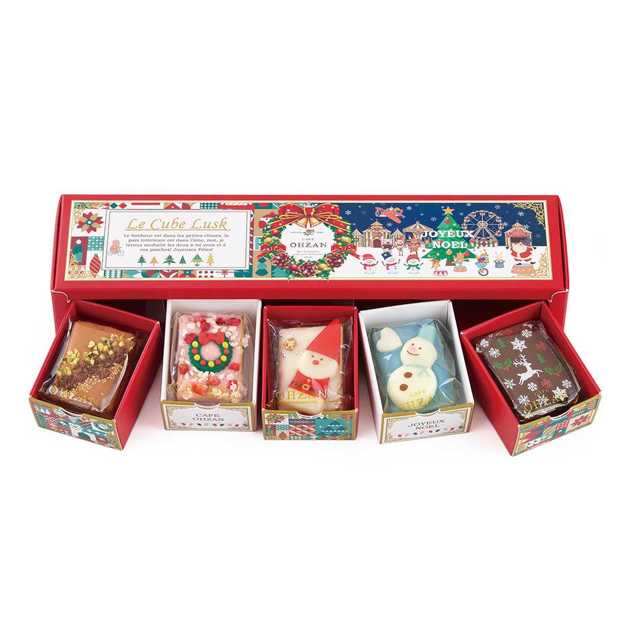 フランス語で「メリークリスマス」を意味するJoyeux Noël (ジョワイユ ノエル)と名付けられたキューブラスクです。