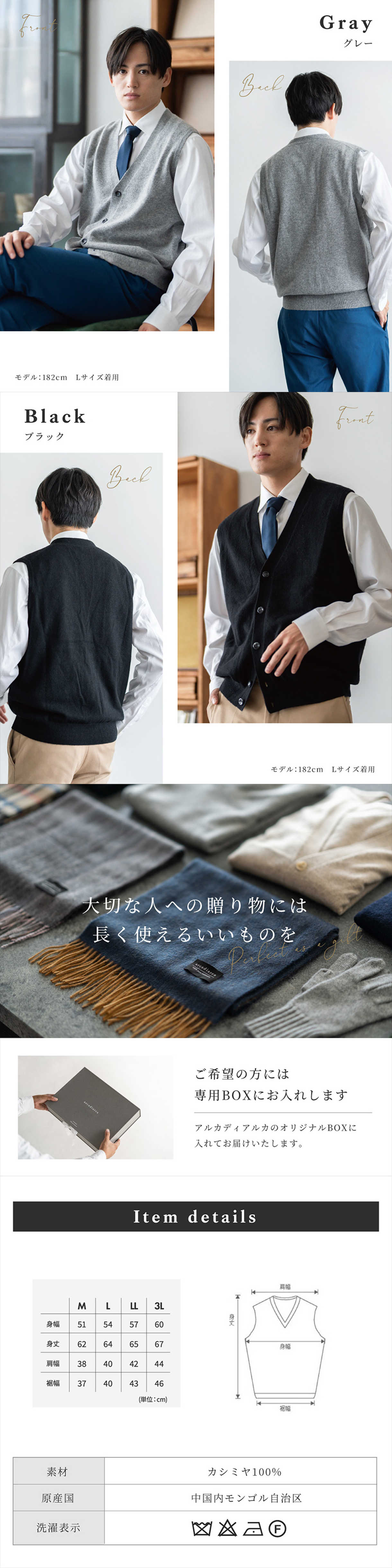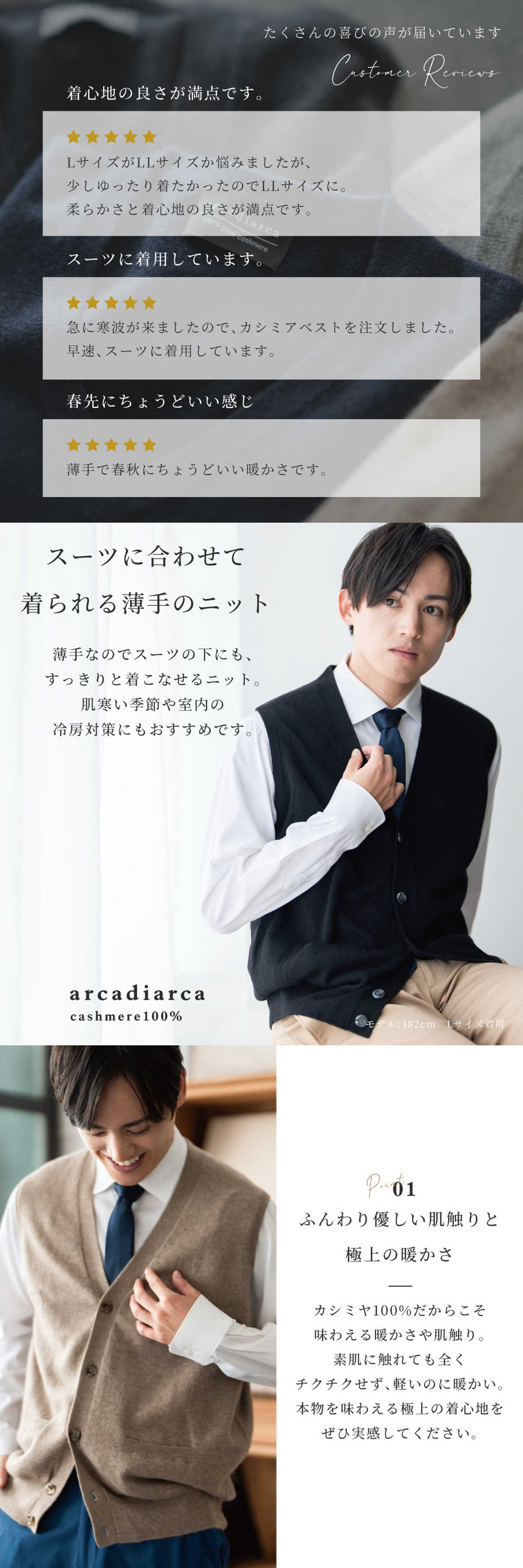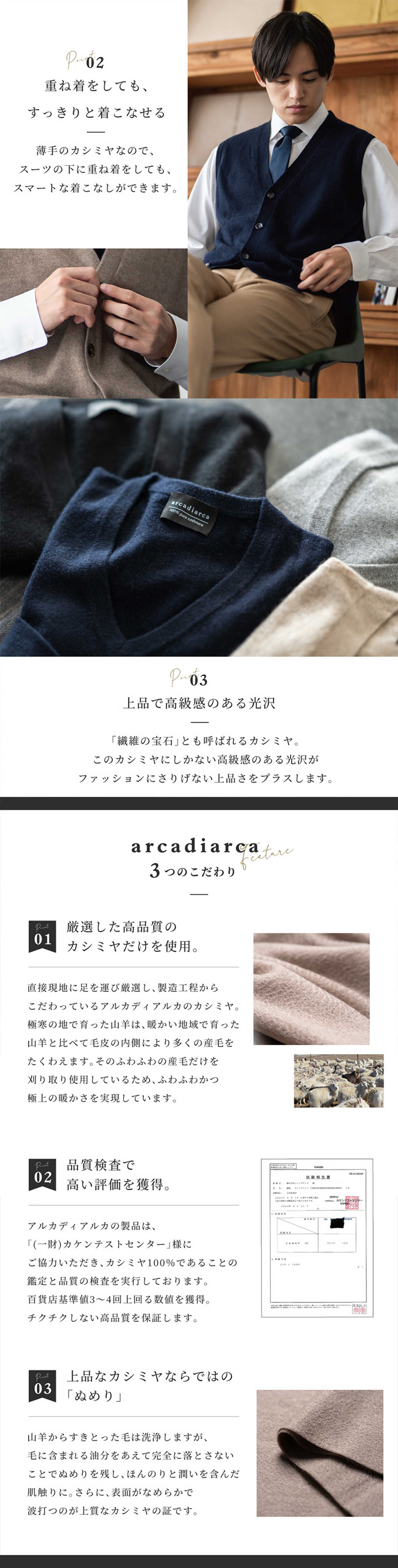 arcadiarca(アルカディアルカ)カシミヤ100%メンズ前開きベスト