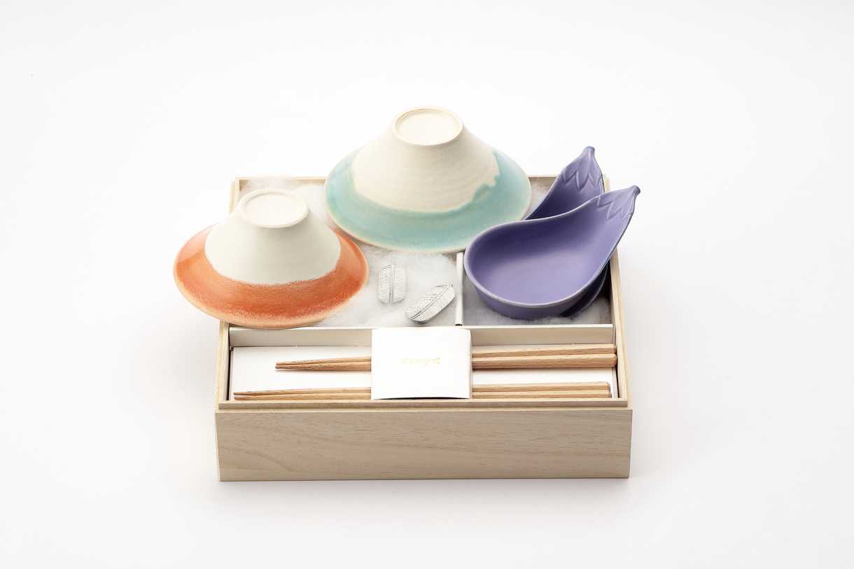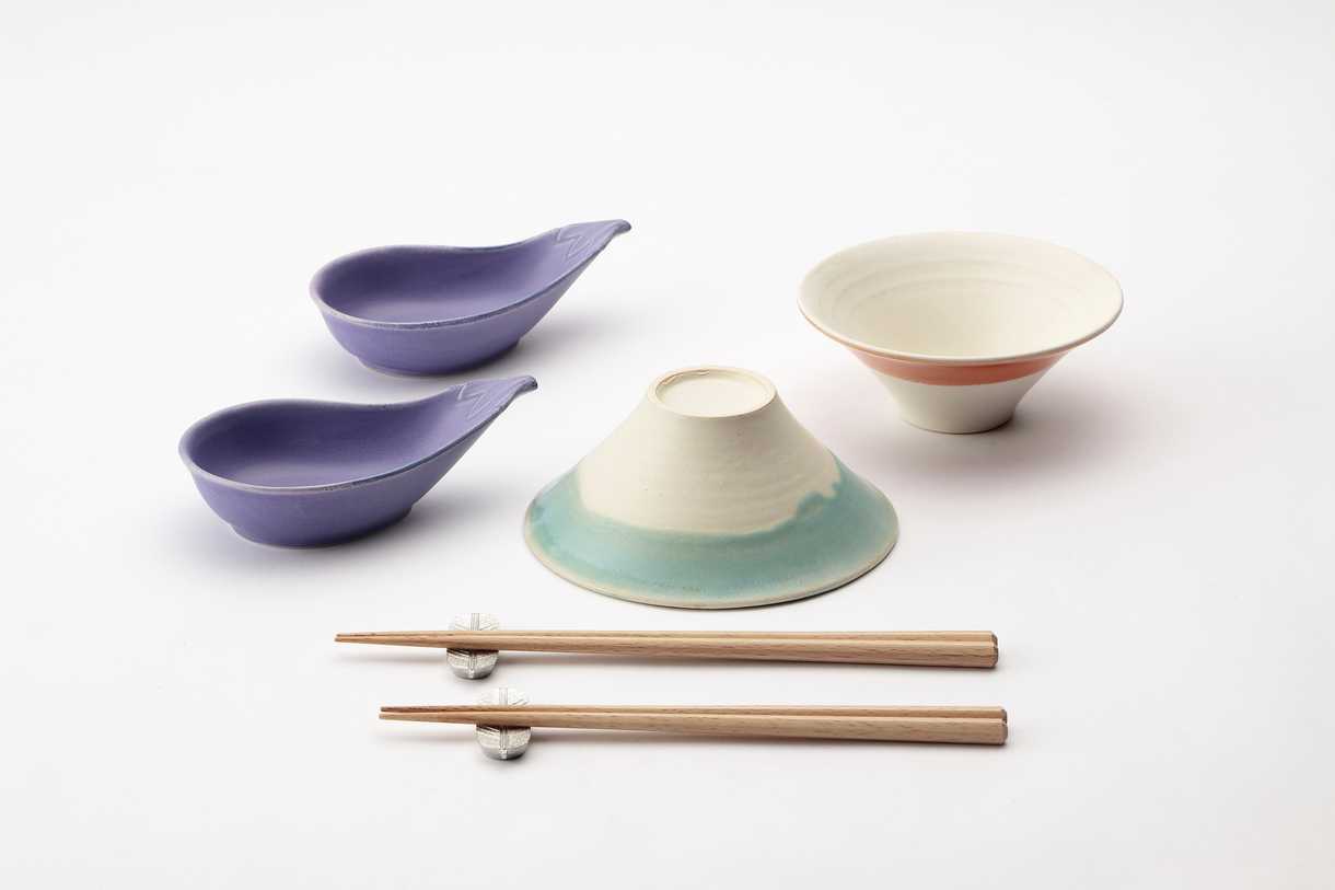 夢に見ると縁起が良いとされている一富士二鷹三茄子。毎日の食卓で縁起を担ぐお茶碗、箸置き、小鉢のセットになりました。