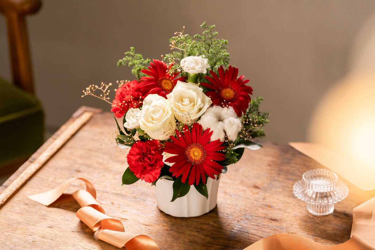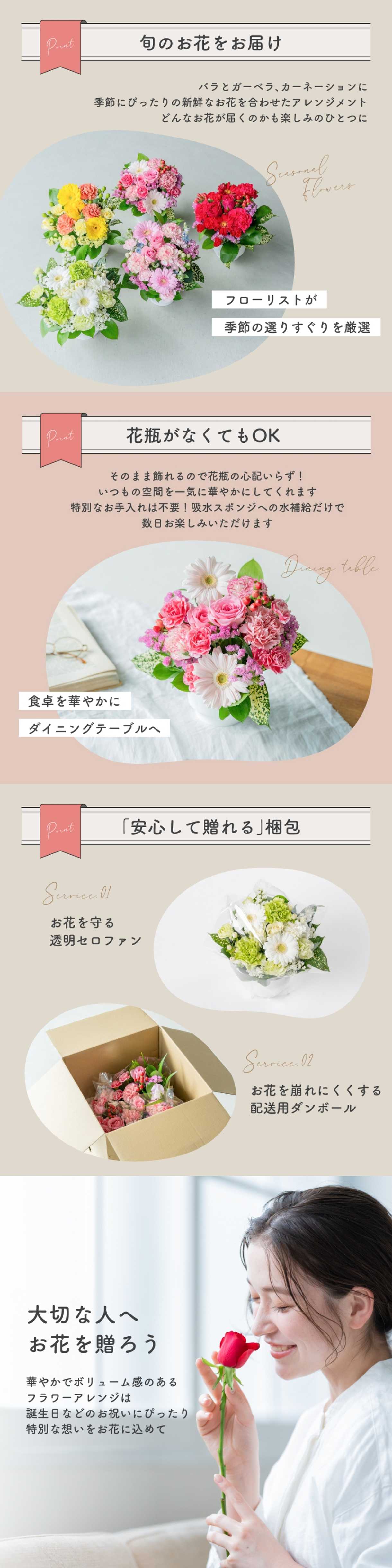 バスケットと一緒に届いてそのまま飾れるアレンジメントなので、ご自宅用でも、ちょっとした気持ちを贈りたい時にもおすすめ!
