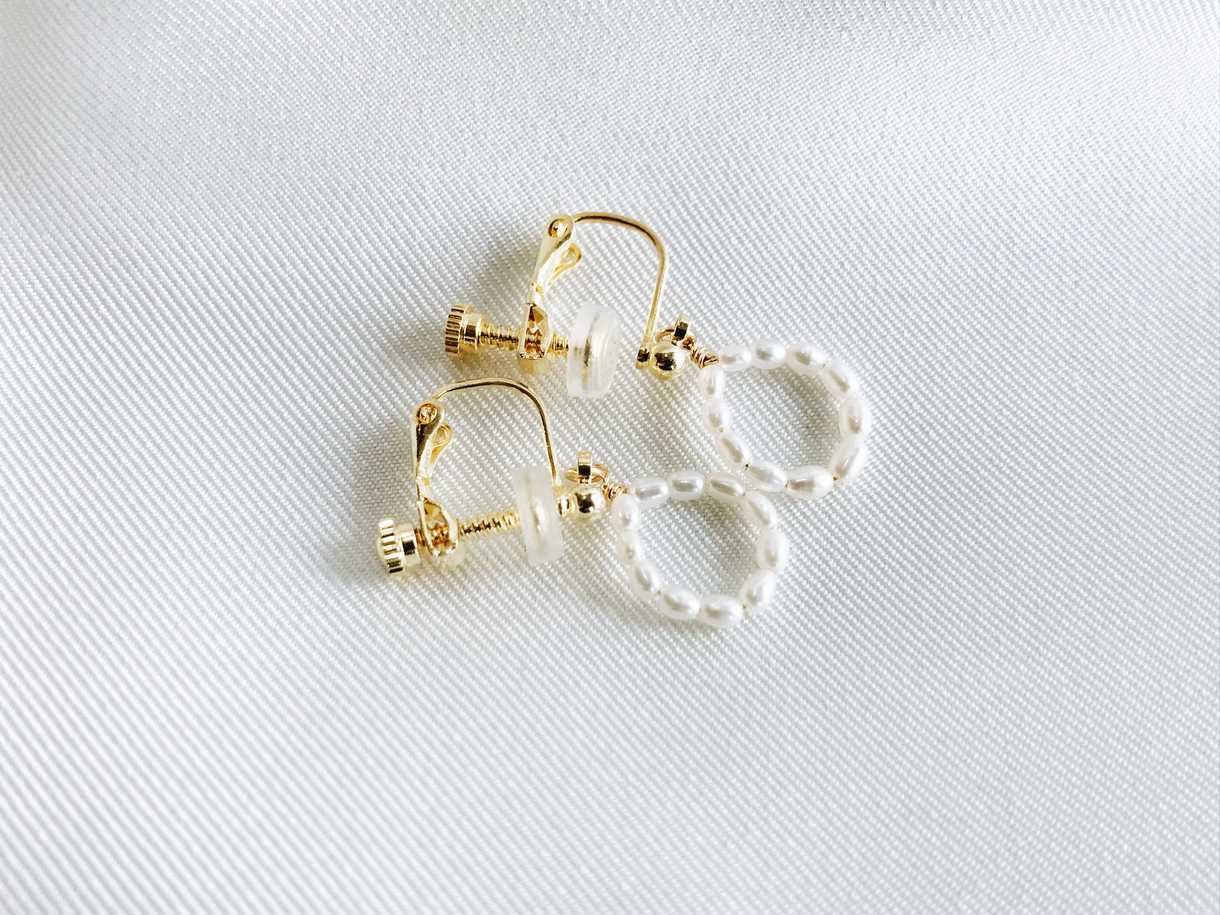 小さな淡水パールを使ったイヤリング・ピアスは、しずくの形をモチーフにしました。