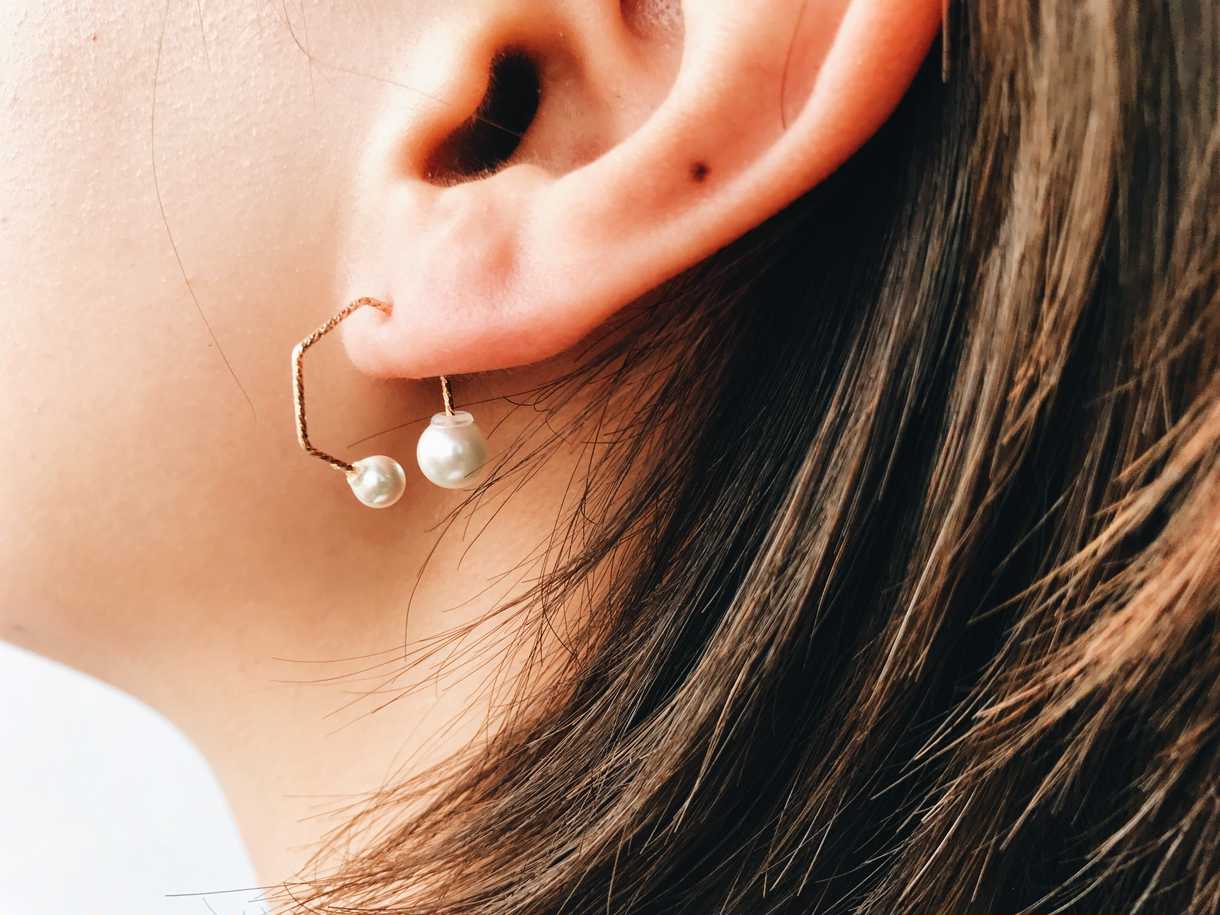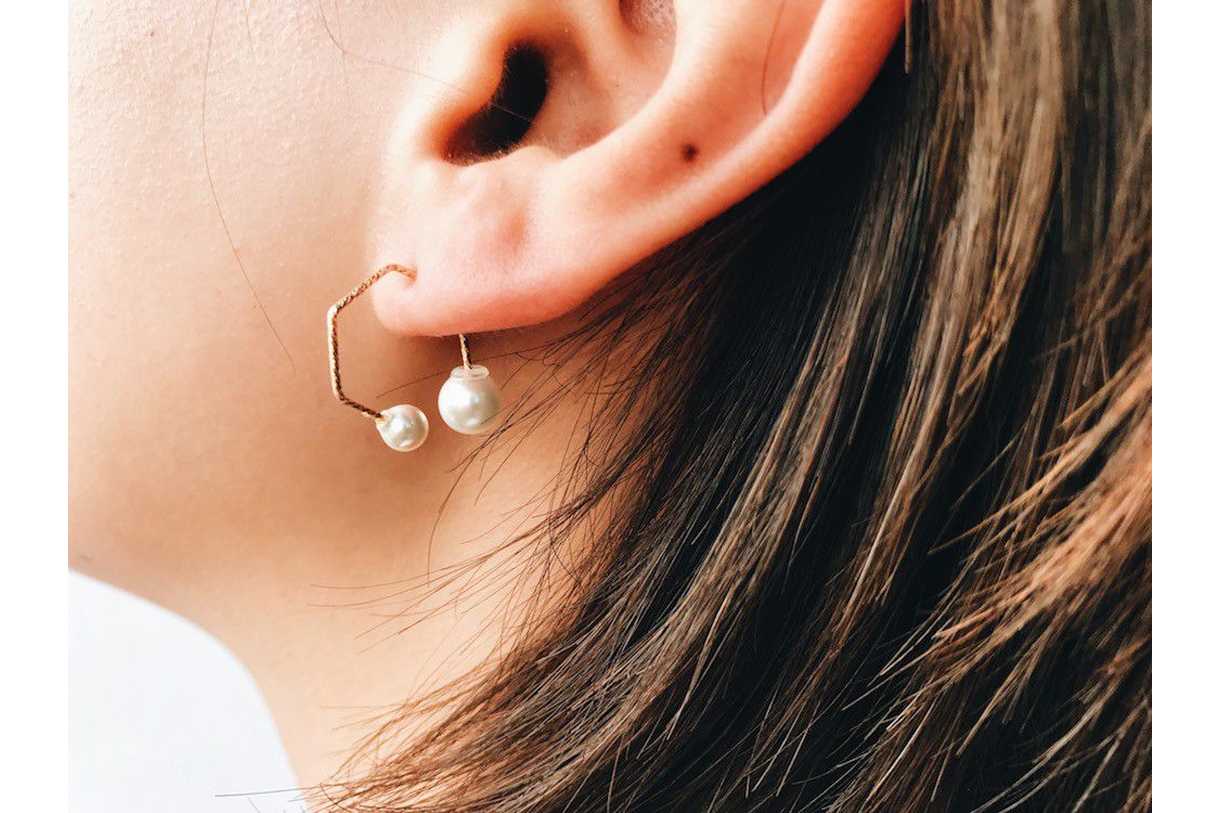 片方のパールがキャッチになっているので、前後・上下、お好きな位置で着けてデザインを楽しむことができます。