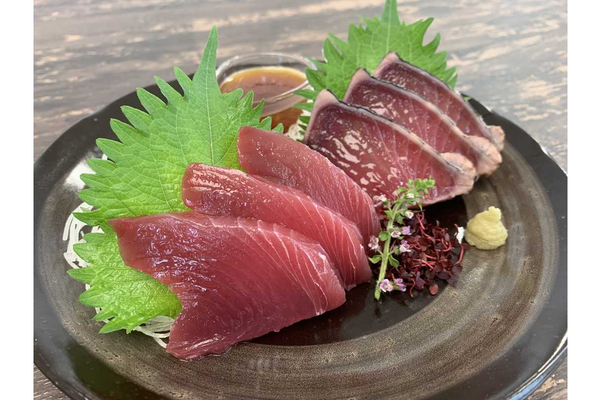 焼津の一本釣りかつおのたたきと刺身の詰め合わせです。