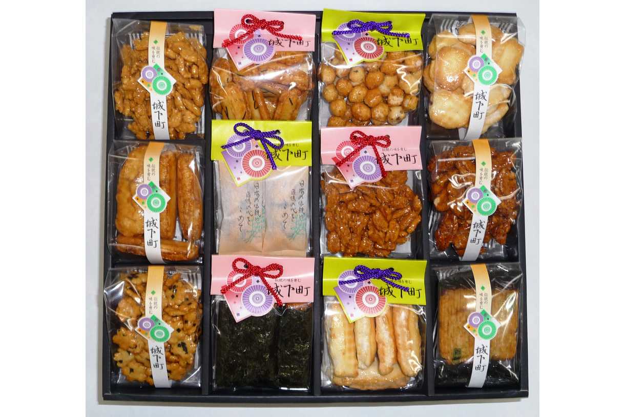 彩り鮮やかなおかき、あられの詰め合わせです。