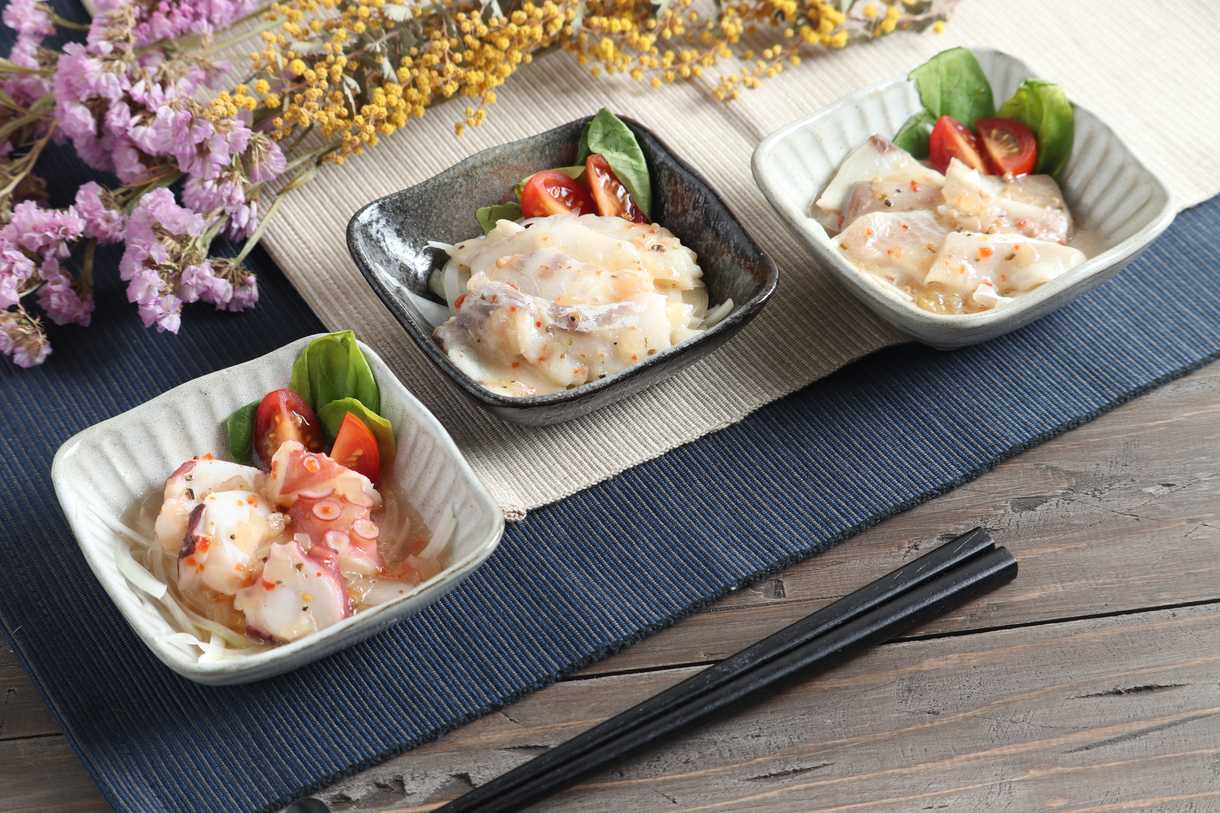 大分産の新鮮な真鯛とぶり、真蛸を切身にしてさっぱり風味のカルパッチョに個食パックしました。そのままでも、サラダと合わせて海鮮サラダとしても美味しくお召し上がり頂けます。