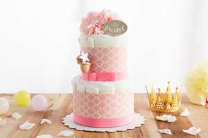 木のアクセサリー付きおむつケーキ 2段 ピンク
